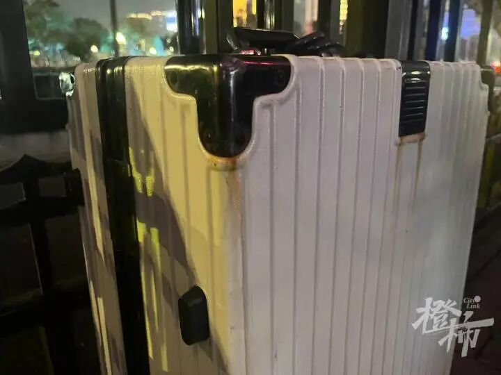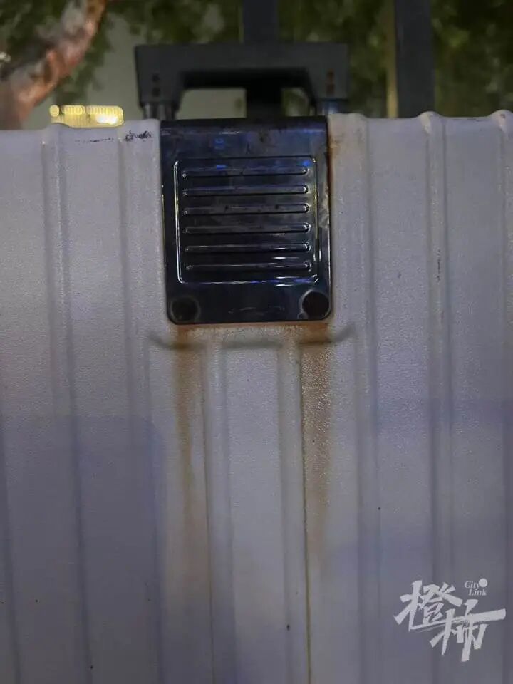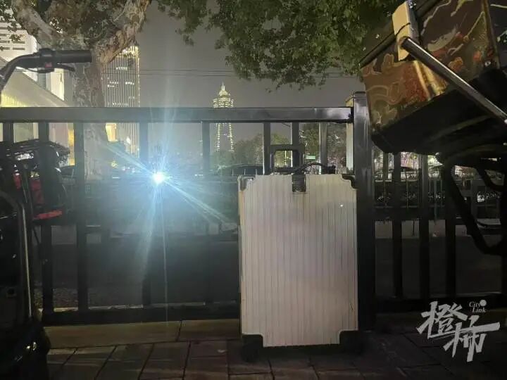 昨天(11月14日)晚上,橙柿记者赶到现场,调查了一下这只行李箱的来龙去脉。
